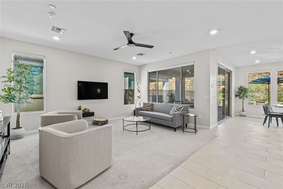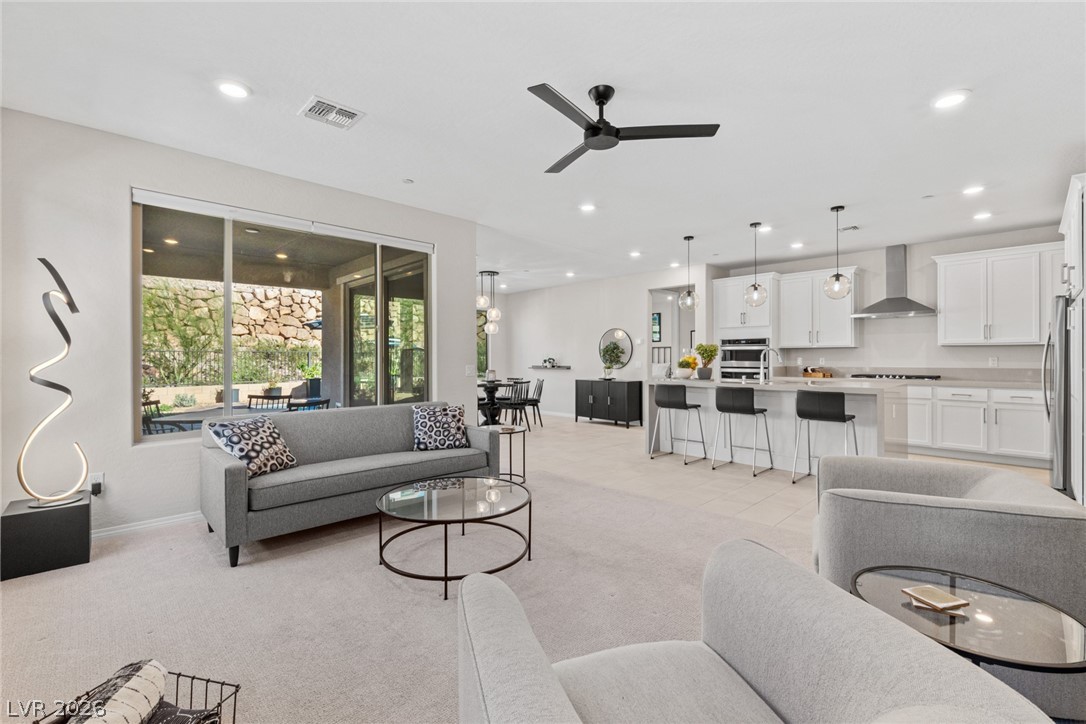 The extended laundry room provides a sink, extra cabinetry, and space for a second refrigerator. Additional highlights include built in primary closets, overhead garage storage, water softener, and a tankless water heater. Enjoy a private backyard with multiple seating areas and a gas heated saltwater pool. Fully PAID OFF Solar system with excellent energy efficiency. Community amenities include a state of the art clubhouse with fitness center with views that never get old, resort style pools, infinity spa, pickleball courts, and a wide variety of classes, clubs, and social activities.